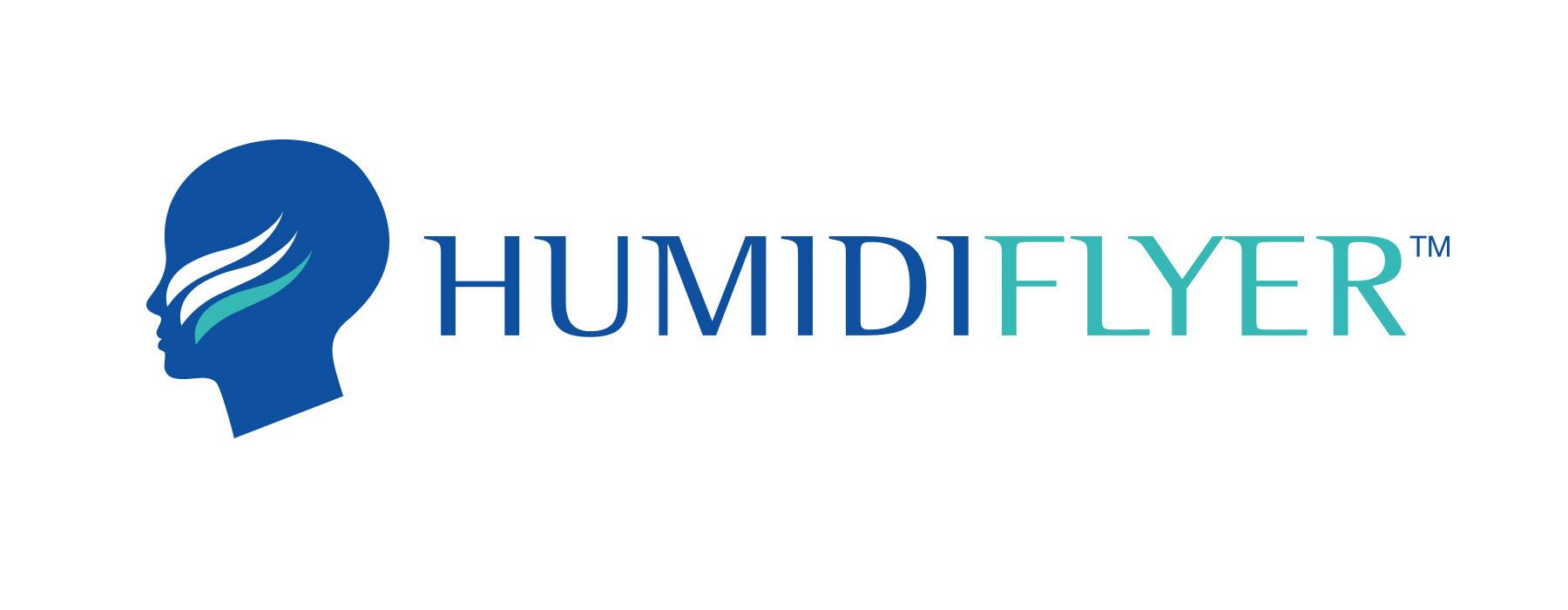 Branding for The HumidiFlyer mask which captures the humidity in your breath each time you exhale. The humidity is trapped in the filter and it is that humidity which is used to humidify the dry cabin air that you are breathing in. Simple recycling.